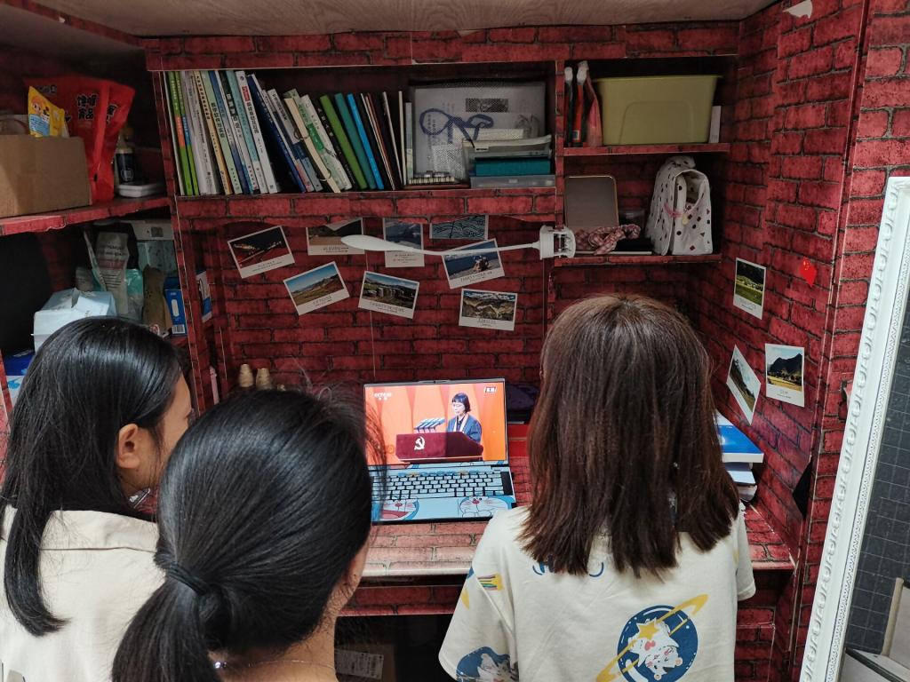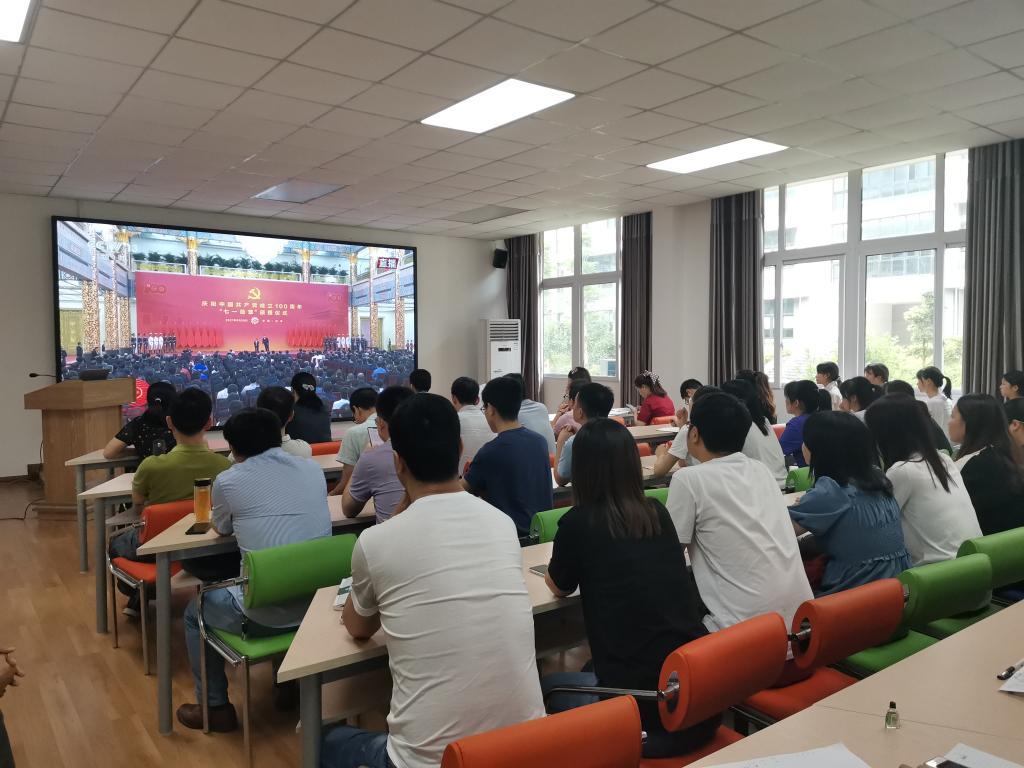 学院党总支精心组织,采取集中和分散相结合的方式进行。75名师生在慎思楼4-206集中观看,其余师生在教室、寝室等场所分散观看。