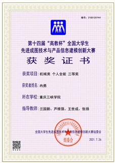 近日,由中国图学学会制图技术专业委员会、中国图学学会产品信息建模专业委员会、西南交通大学共同主办,高等教育出版社、机械工业出版社、华为云等单位协办的第十四届“高教杯”全国大学生先进成图技术与产品信息建模创新大赛在西南交通大学落下帷幕。本届大赛吸引了全国551所高校、6743名选手通过线上参赛。经过激励的角逐,环化学子秦选淳、冉勇、廖明、汤阿铸和机械学子陈果组成的团体在轻量化设计、3D打印两个项目竞赛中斩获国家级二等奖,在尺规绘图、计算机建模等构成的综合项目中获机械类团体三等奖,其中陈果同学和冉勇同学分别斩获个人全能二等奖和三等奖,创有史以来最好成绩。