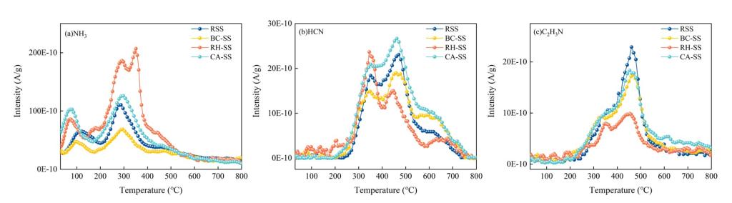 图2热解过程中含氮污染物的释放曲线