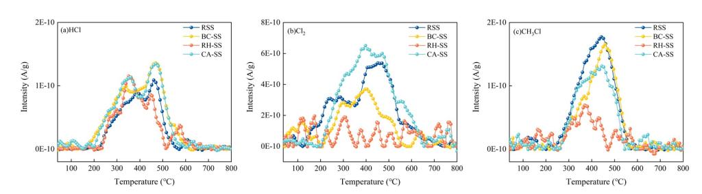 图4热解过程中含氯污染物的释放曲线