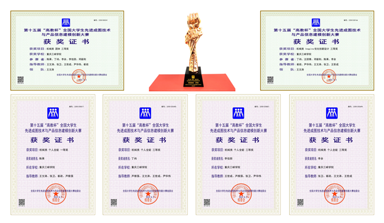 在近日落幕的第十五届“高教杯”全国大学生先进成图技术与产品信息建模创新大赛总决赛上,环化学子与机械学子代表学校在线上参加了比赛,并在参赛的675所学校1041支队伍中脱颖而出,其中陈果荣获个人全能一等奖,丁祎、李佳朋、李余分别荣获个人全能三等奖,同时获得了优化创新设计三等奖和机械类团体三等奖,再次取得优异成绩。