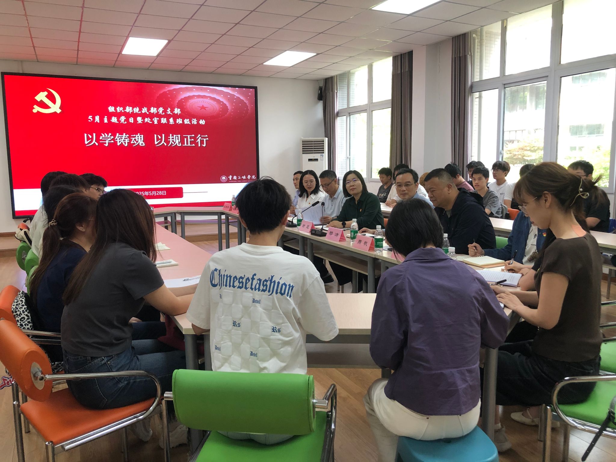 为深入落实学校机关处室联系学生班级工作部署,扎实推进立德树人根本任务,5月28日下午,党委组织部统战部党支部在慎思楼4栋206会议室开展5月主题党日暨处室联系班级活动。活动由党支部书记、学校组织部部长谢昆主持,党委副书记付川等党员同志参加。