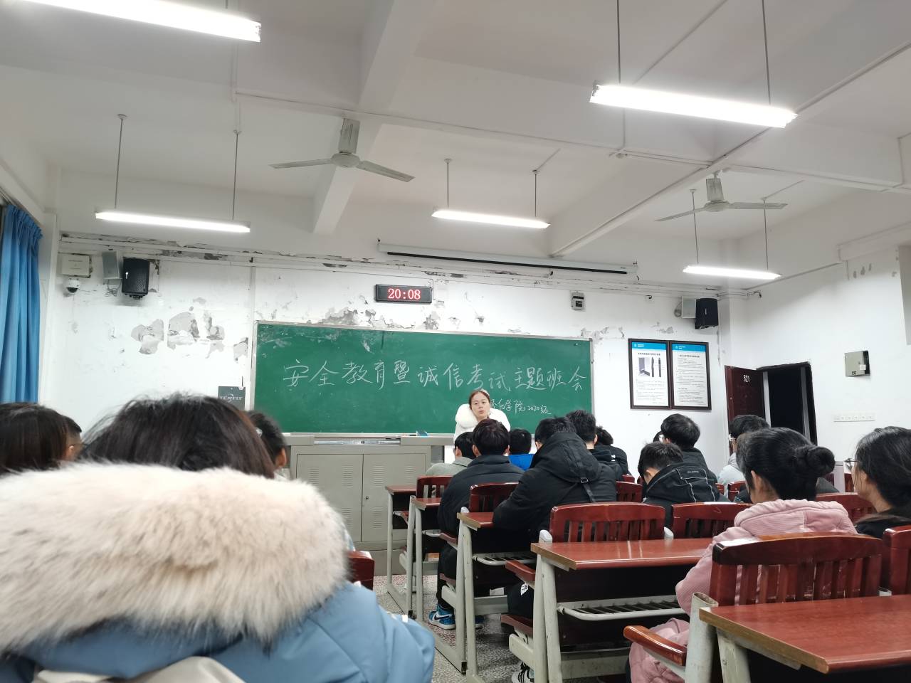 主题班会上,辅导员们强调诚信教育暨遵守考规考纪的重要性,结合以往我院关于考试出现的各种违纪案例及处理办法告诫同学们要严肃对待考试,透明考试,诚信做人。并组织同学们签订了诚信考试承诺书,营造了刻苦备考、诚信应考、文明参考的浓厚氛围;安全教育方面,辅导员强调要严格请销假制度。学生以学为主,严禁学生旷课或不假离校去参加圣诞狂欢、元旦促销等活动,劝诫学生不要去商圈凑热闹和因为好奇去参加圣诞元旦相关活动而被骗、被盗、被抢、被利用等情况,做好疫情防控常态化。严格考勤制度。各班级在2020年12月24日、25日、31日和2021年1月1日一定要准确掌握每位学生去向,清查学生晚归、不归等情况;不得以官方名义组织班级过洋节(圣诞节、平安夜),应当在学生中大力传承和弘扬中华优秀传统文化。