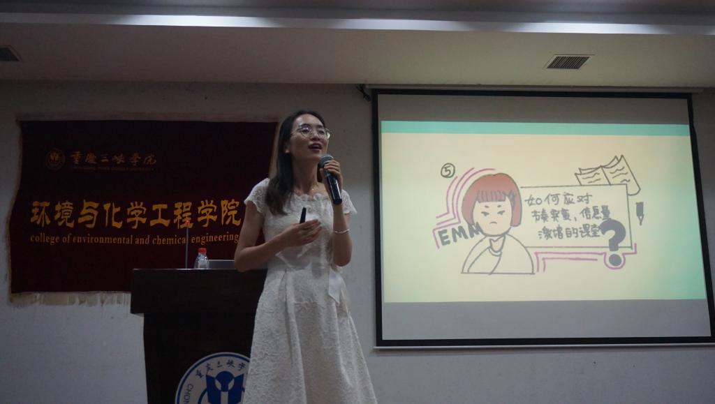 伊始,罗书晗以“学校各处的地名和方位”为抢答题目,以此了解大家对学校的熟悉度;之后,她围绕“与高中相比大学的变化、大学新生适应困惑、如何适应大学生活”三个方面展开,她解答了新生来到大学所面临的焦虑和困惑,对“如何应对生活和学习上的困扰、如何调控压力、如何避免出现负面情绪、如何调节已出现的不良情绪”做全面辅导。