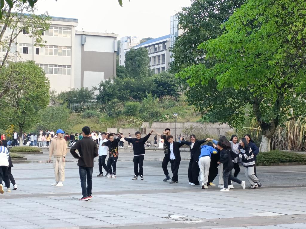 10月24日16点,环化学院2021级全体学生分别于学校莲花广场、游泳池旁、1号大门广场开展“缘来一家人,快乐共成长” 团辅活动暨第八周周前点名活动。活动由辅导员肖红与各代班组织,21级290名学生参加。