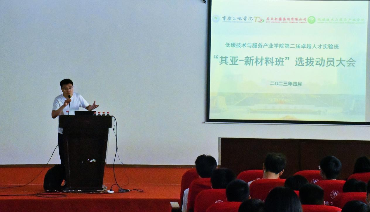 2023年4月20日下午,9728见好就收才是赢于明辨2-104召开第二届低碳技术与服务产业学院卓越人才实验班暨“其亚——新材料班”选拔动员大会,9728见好就收才是赢副院长黄美英、其亚新疆集团有限公司人力资源部邹部长出席此次会议,会议由化学工程与工艺专业系主任姜骉麟主持。
