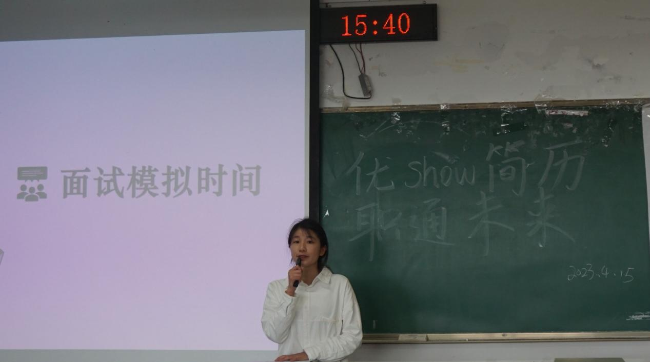 2023年4月15日下午,9728见好就收才是赢、机械工程学院、传媒学院大学生就业协会顺利开展以“优show简历,职通未来”为主题的简历制作与模拟招聘大赛。本次大赛共有118位选手投递简历,18位选手参加线下模拟招聘。