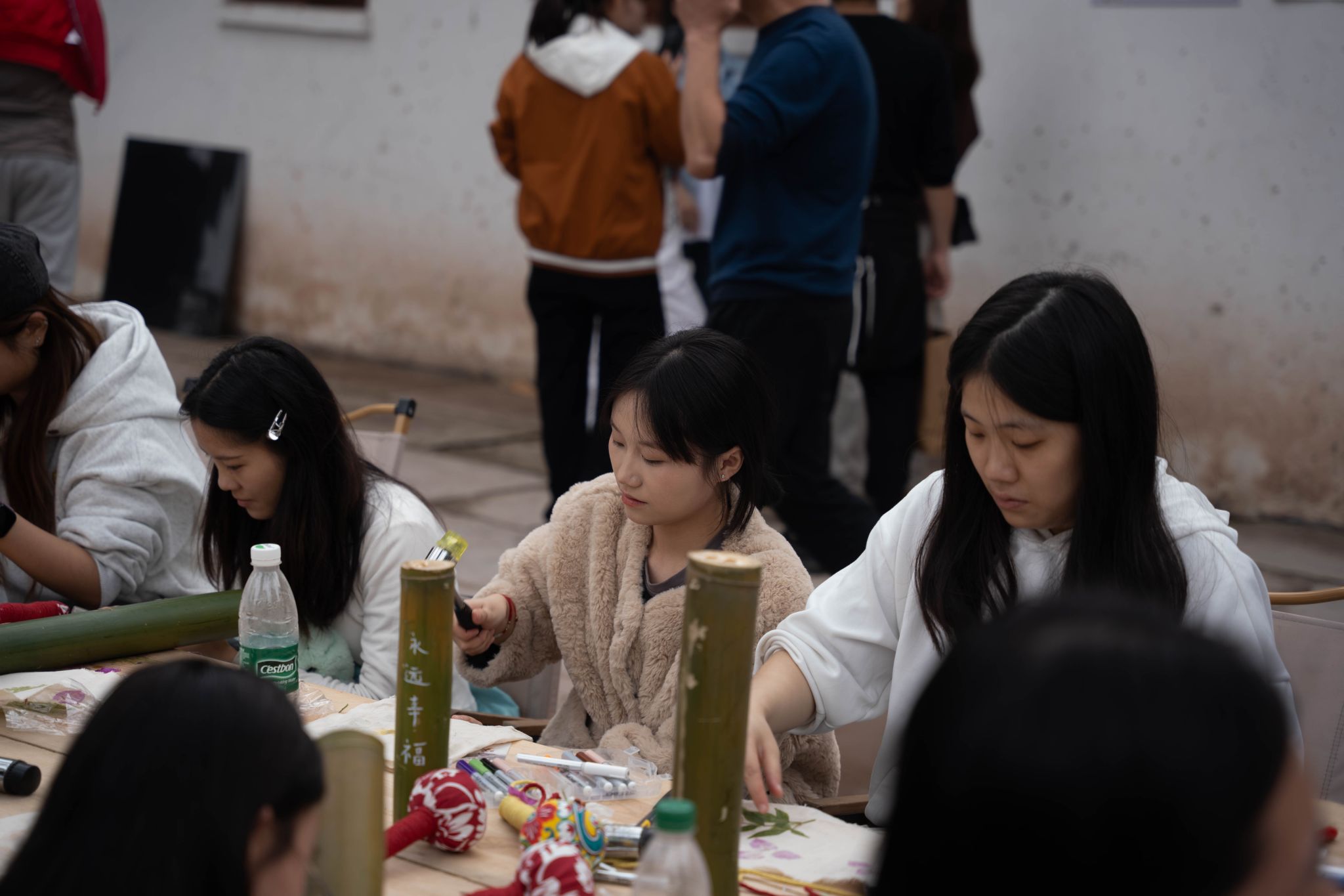 沿着青石古道拾级而上,党员们在层林尽染中探访山城防御体系遗址。登临制高点后,同志们依次擂响象征历史传承的行军鼓,浑厚鼓声在山谷间回荡。学生党员黄阳阳激动地表示:“每一声鼓响都让我感受到与历史的深度对话,这不仅是力量的传递,更是精神血脉的赓续。”在天生城文物陈列馆,珍贵文物与沉浸式沙盘生动展现了这座长江上游军事要塞的营造智慧。预备党员邵文杰在参观后深有感触:“这些文物让我们直观理解了古人的智慧,作为环境科学专业学子,更要从中汲取生态营城的传统智慧。”非遗工坊内,党员们亲手制作艾草养生锤,在一针一线中体悟工匠精神。学生党员陈思蒙分享道:“亲手制作的过程让我体会到传统文化的魅力。”
