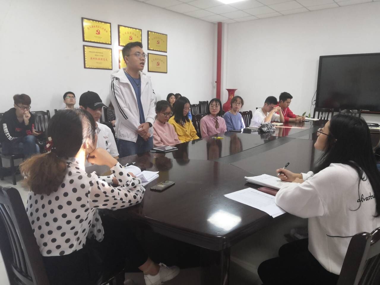 本次活动共三项议程。第一项,党支部委员换届选举。8名正式党员进行了不记名投票,票决结果统计显示组织兼任纪检委员苏佳庆、宣传委员杨淑杰。第二项,全体同志认真学习教育部下发通知关于贯彻习近平总书记教师节重要寄语及习近平总书记在科学家座谈会上的重要讲话。集中学习结束后,张娆、蓝扬、谭泽纯等同志结合自身所闻所见,分享了学习两次重要讲话后的心得体会。第三项,总结与规划。全体党员同志纷纷作出思考,其中李超、袁千禧两位同志着重强调要时常自省,加强思想建设,提升自我能力,切实开展好党员示范活动,为同学们做好服务工作。