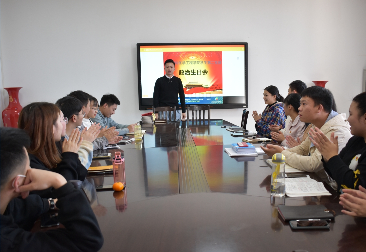 会议第一个流程,为8名党员过政治生日。伊始,所有党员为8名党员齐唱生日歌,然后周才波同志为其发放生日礼物,随后倪琪同志带领8名党员同志重温入党誓词,接着,姚鑫和刘瀚霜两名同志代表8名党员发表心得体会,表示很荣幸在毕业之前加入中国共产党,临近毕业参加这个活动,感谢党组织的关怀。希望大家努力学习,预祝在坐考研的同志们能够马到成功。