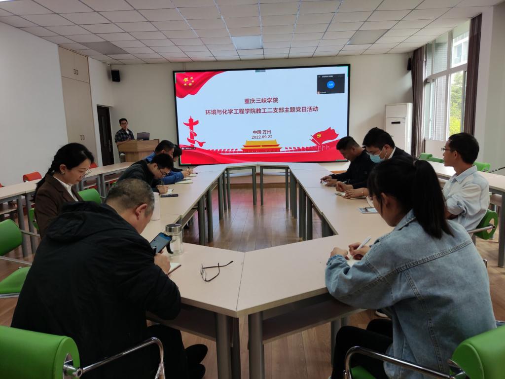 2022年9月22日下午在慎思楼4-206会议室,环化学院教工第二支部开展9月主题党日活动,会议由党支部书记宋先雨主持,全体20名党员参加。