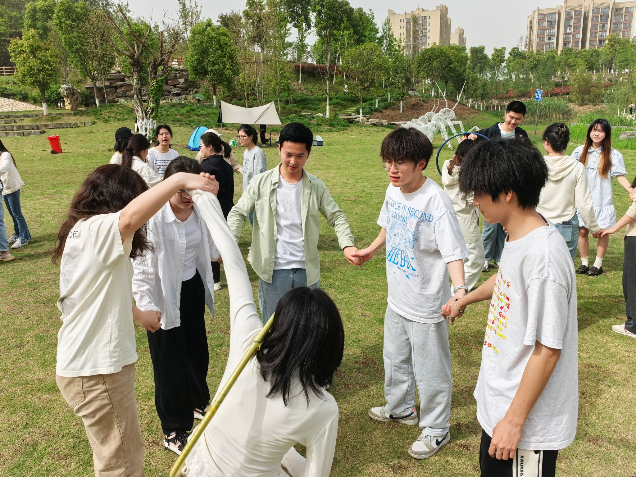 此次活动创新设计三大特色游戏环节,将党性教育巧妙转化为生动实践:“飞运乒乓” 竞速挑战中,党员两人一组开展颠球接力,在 “严守规则、协同配合” 的过程中强化纪律意识,优胜队伍还能获得 “战略提示”,以此激励对标争先精神;“一圈到底” 协作攻坚以呼啦圈传递为载体,打破年级与专业界限,党员们凭借“俯身低姿”“侧身接力” 等技巧攻克难关,在互助中深刻感悟党组织的强大凝聚力;“桃花朵朵开” 党群推演模拟社区治理场景,党员们依据八项规定要求制定务实方案,坚决杜绝形式主义,于实践中厚植为民情怀。