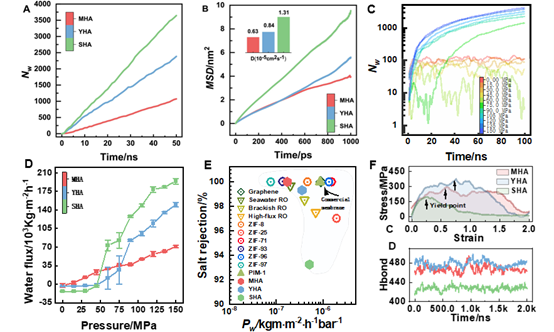 综上,本项研究有助于评估腐殖酸仿生膜的海水淡化性能,并有助理解离子和水分子在仿生膜中的筛分机制,进而指导其他生物启发膜的设计与开发。