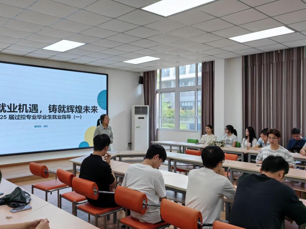 9月23日,在慎思楼4栋206教室,我院举办了一场以“把握就业机遇,铸就辉煌未来”为主题的就业指导会议。会议由辅导员肖红主持,2025届过程装备与控制工程专业学生参加。本次会议旨在为即将毕业的过控专业学生提供全面、多角度的就业指导,助力学生顺利实现从校园到职场的过渡。