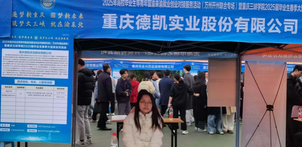 3月21日,重庆凯德实业股份有限公司作为重点招聘企业受邀参加我校2025年春季校园大型双选会。本次双选会在我校游泳池外小广场举行,吸引了多名应届毕业生及在校生到场咨询,现场气氛热烈。